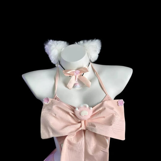 Pink Kitty Maid Dress with Bell Choker - Kawaii Lolita Cosplay Costume, Sexy Cute Catgirl Outfit for Anime Con PPF0329